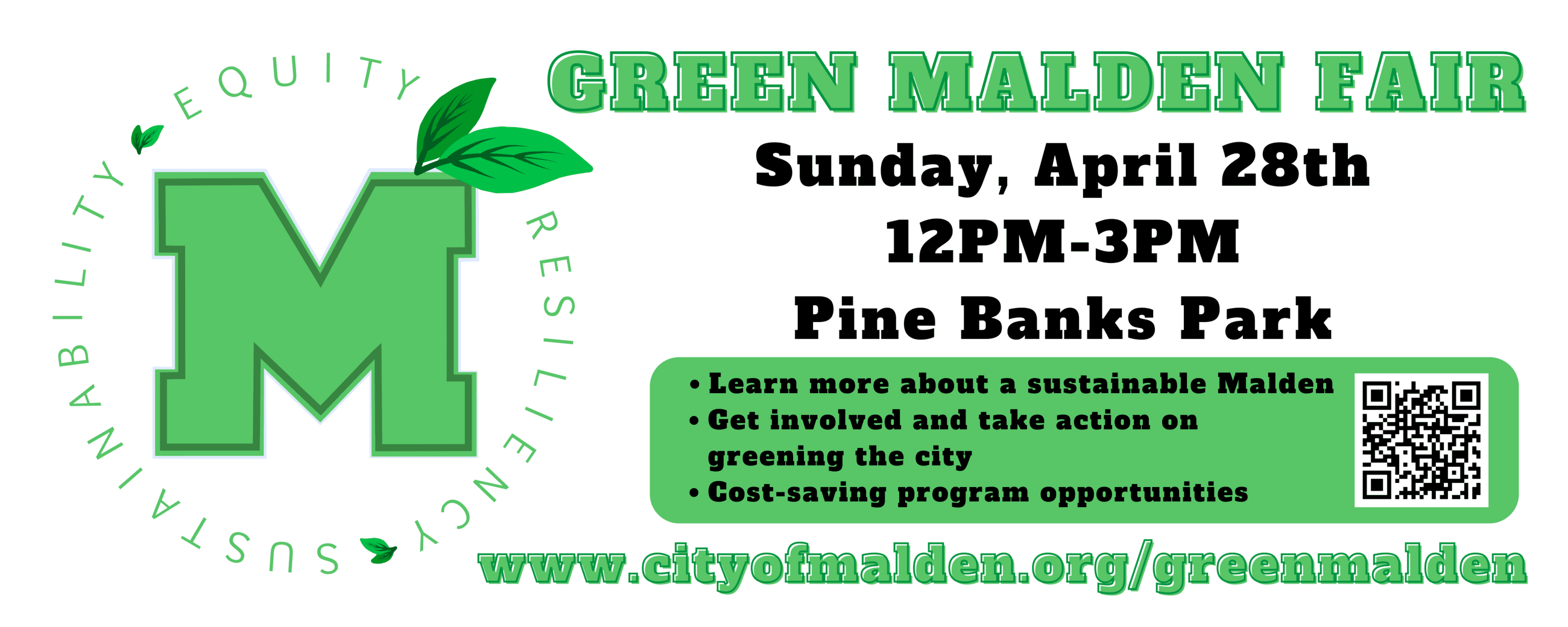 Announcing the 2nd Annual Green Malden Fair! This fair will be held on Sunday, April 28 from 12 - 3PM at the Field House at Pine Banks Park. Like last year, the fair will feature a variety of vendors, from recycling vendors that can take your Styrofoam and textiles, to Malden's other green partners like Black Earth Compost and Blue Bikes, to tables about Malden's Climate Action Plan and active climate-forward groups in Malden. And La Qchara's food truck will be there from noon - 2pm.